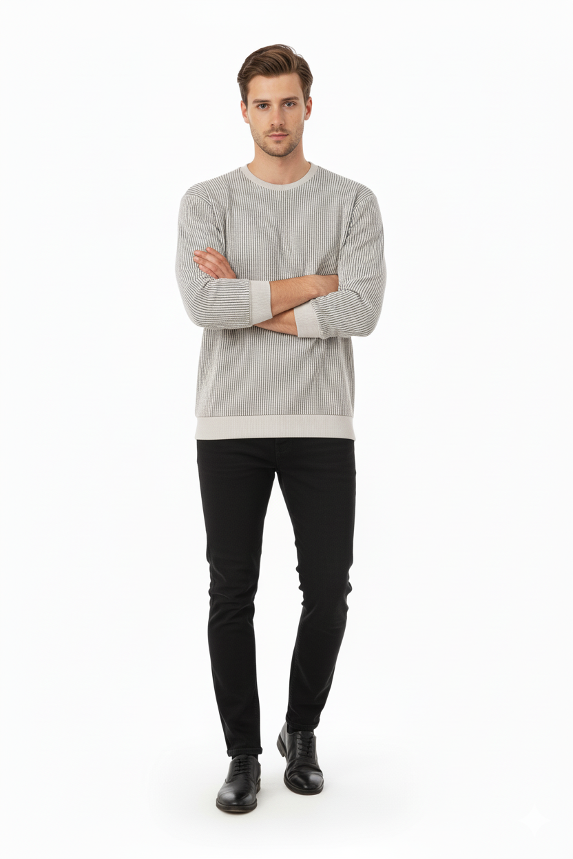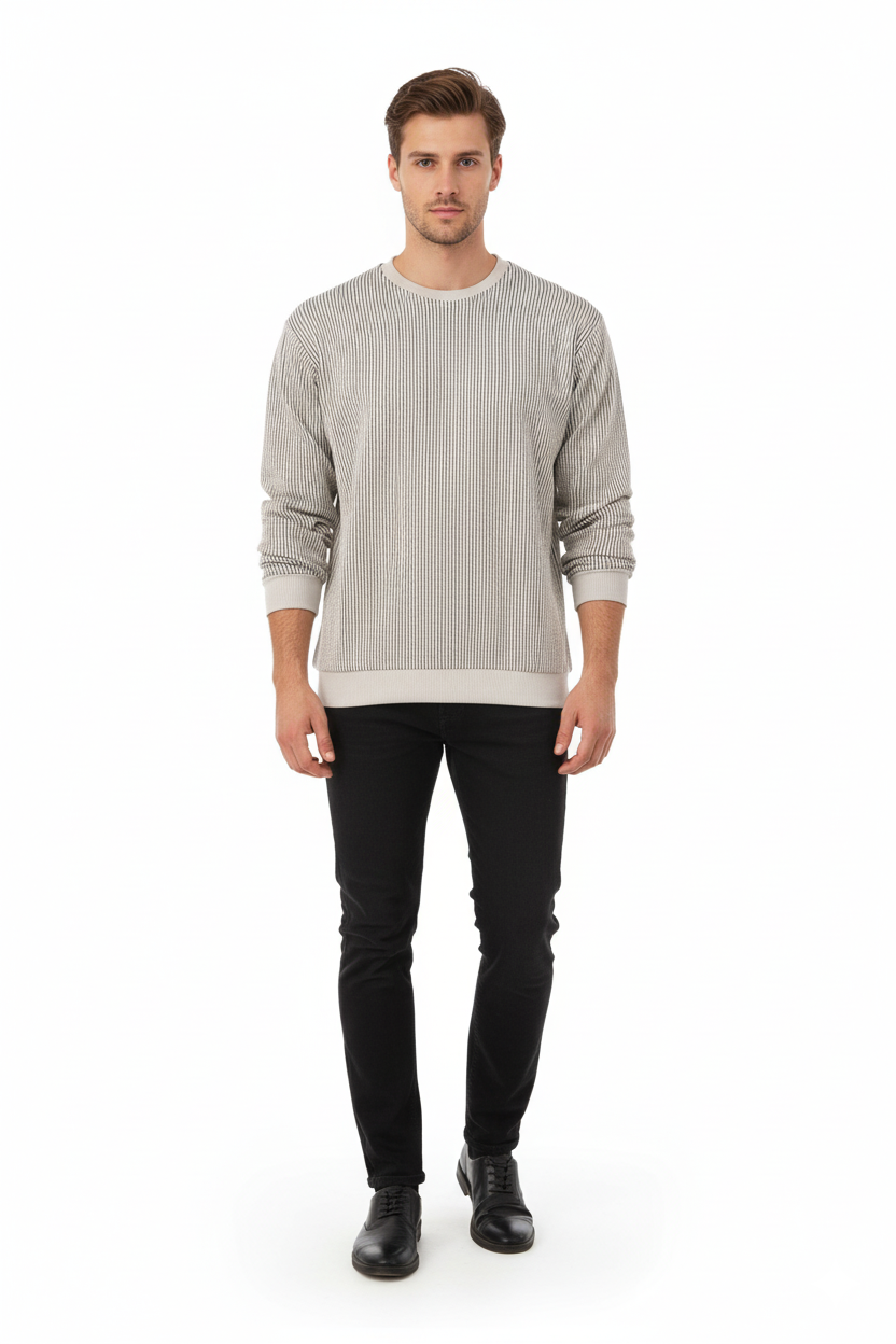 Erkek Mevsimlik Doğal Pamuklu Sweatshirt Bisiklet Yaka Çizgili Rahat Kesim Tam Kalıp874.99TL969.99TL